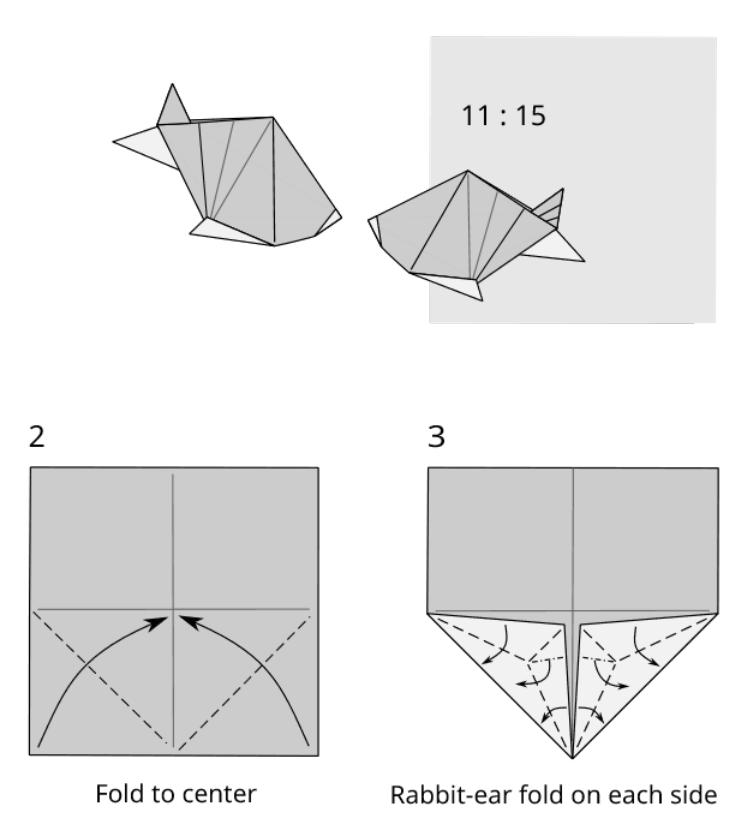 Easy and enjoyable to fold, the Playful Fish folding sequence ends with a tail-locking step, which works by hiding three flaps in three pockets.